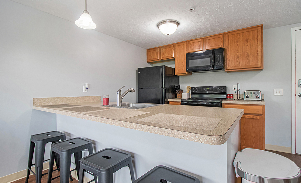 Each of our student apartments in South Bend, Indiana, features spacious floor plans, private bedrooms, private bathrooms in select units, and contemporary interior features. Choose your select layout, including one-bedroom apartments, two-bedroom apartments, or three-bedroom apartments near IU South Bend, and enjoy modern features and lavish conveniences created to help elevate your college lifestyle.